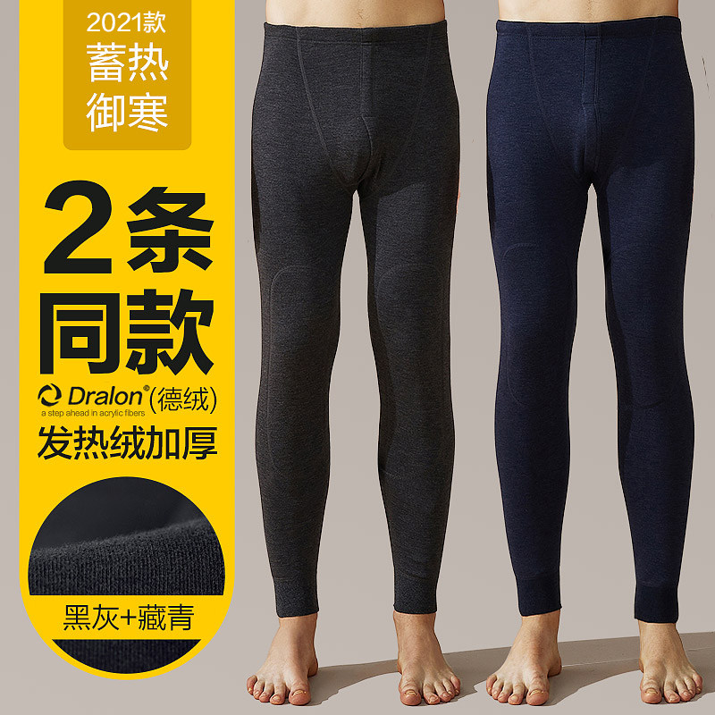 恒源祥秋裤男士保暖裤无痕德绒自发热冬季加绒裤薄款毛裤紧身打底_933 175/XL 加厚德绒款(黑灰+藏青)羊毛护膝