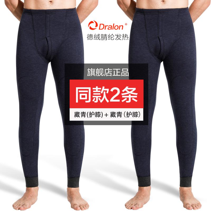 恒源祥加绒加厚保暖裤男士德绒冬季含羊毛护膝打底棉毛线秋裤绒裤_560 165/M【德绒发热纤维保暖】 加厚德绒(藏青+藏青)羊毛护膝