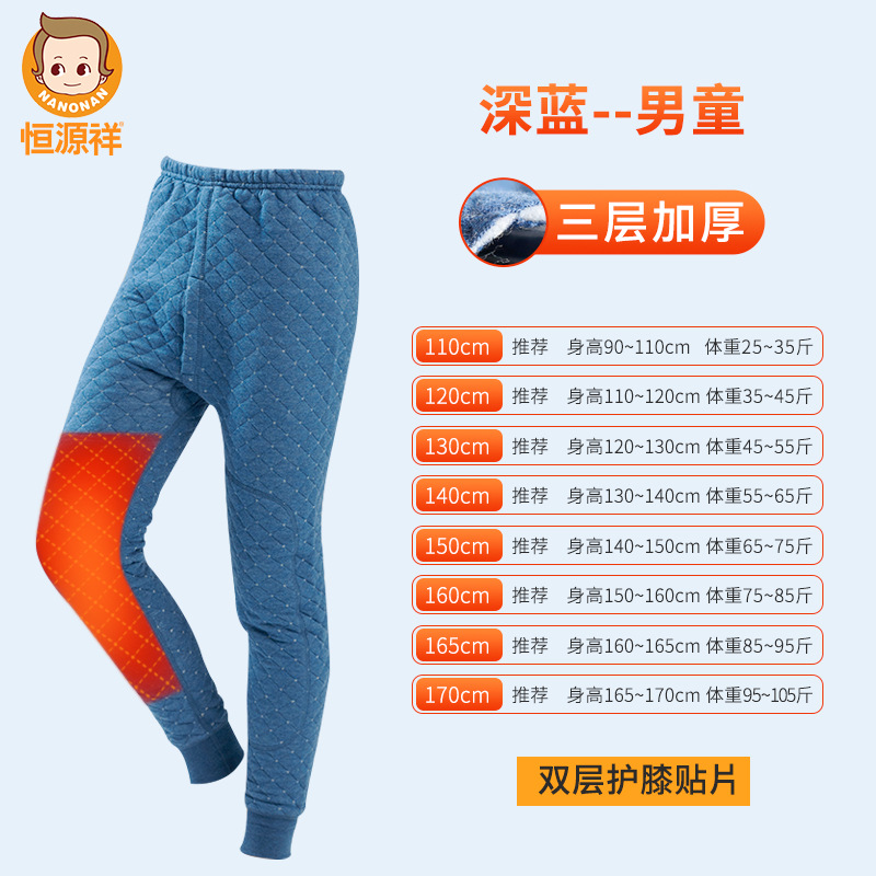 恒源祥儿童保暖裤男童女童内穿棉裤秋冬加绒加厚大童纯棉夹棉秋裤 130cm 【男童】深蓝
