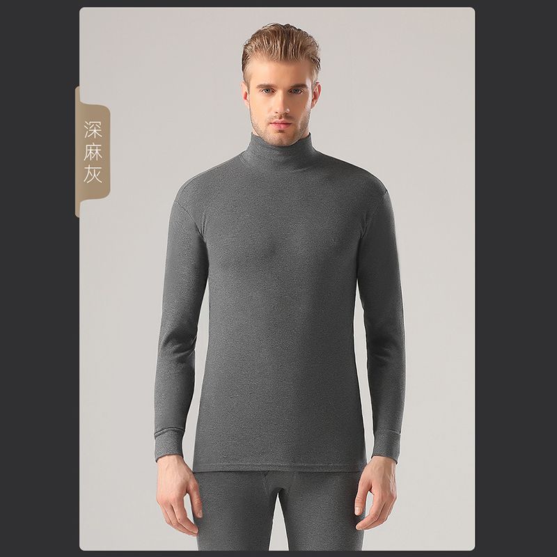 恒源祥棉毛衫女纯棉中高领套装保暖内衣男士秋衣秋裤基础内衣_9 XXL 男士深灰色