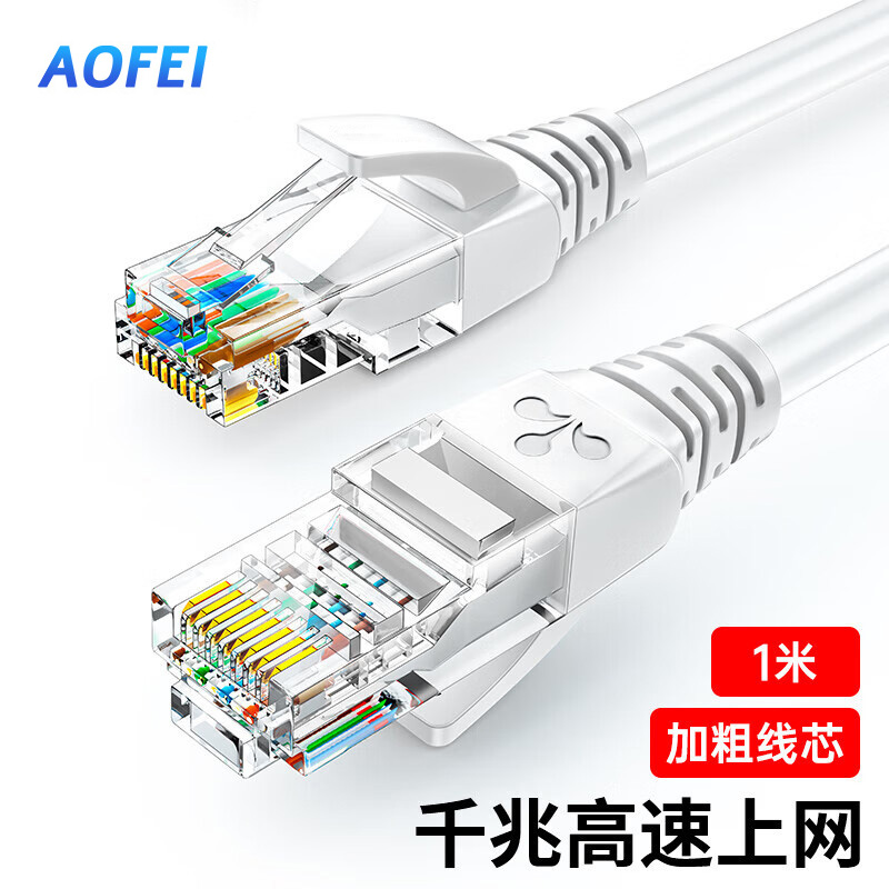 澳狒(AOFEI)超五类网线 CAT5e类高速千兆网线 1米 工程/宽带电脑家用连接跳线 成品网线 白色