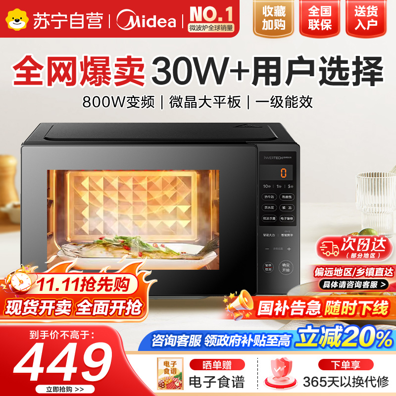 美的(Midea) 微波炉家用智能变频微波炉小型智能平板速热多功能一体光波炉一级能效20L 变频微波PM20M3