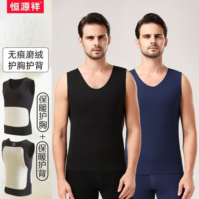 恒源祥男士保暖背心无痕加厚马甲加绒德坎肩打底衫内穿秋冬季 170 2件装-藏青+黑色-保暖护胸护背