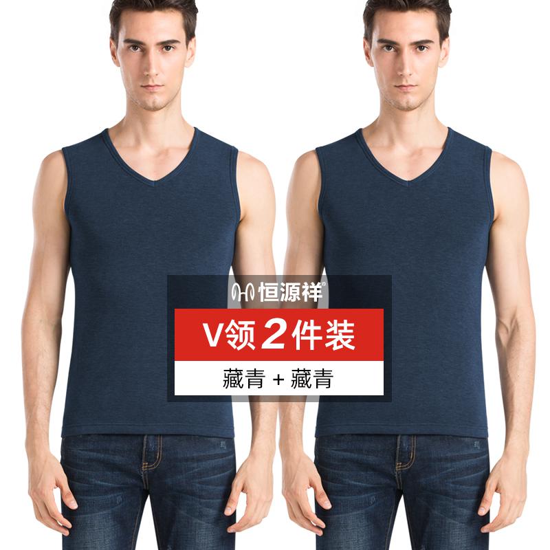 恒源祥男士德绒保暖背心加绒加厚无痕打底棉马甲内穿上衣秋冬季_867_927 170/L 【V领】藏青+藏青
