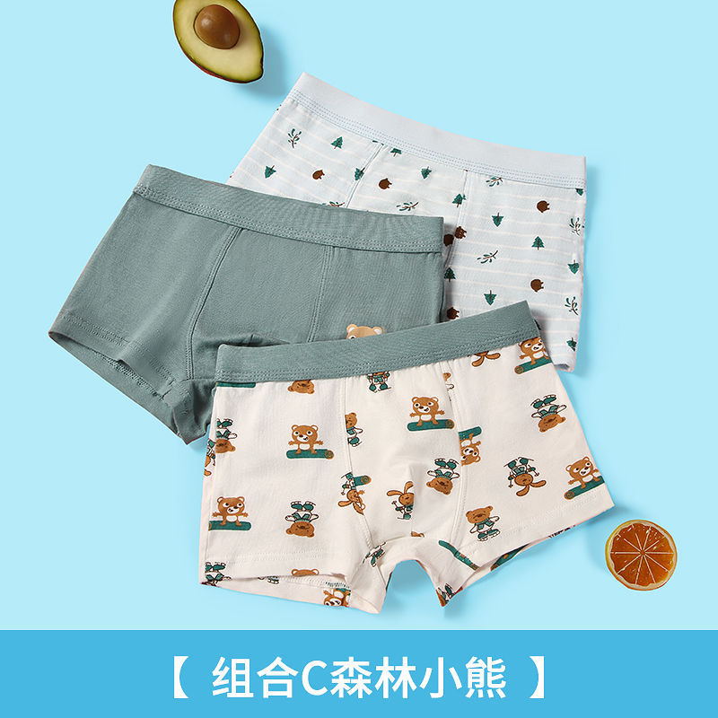 恒源祥儿童内裤男女童纯棉平角四角短裤头棉宝宝小童中大童夏季_669 高130/140cm/重50/60斤 森林小熊【男】
