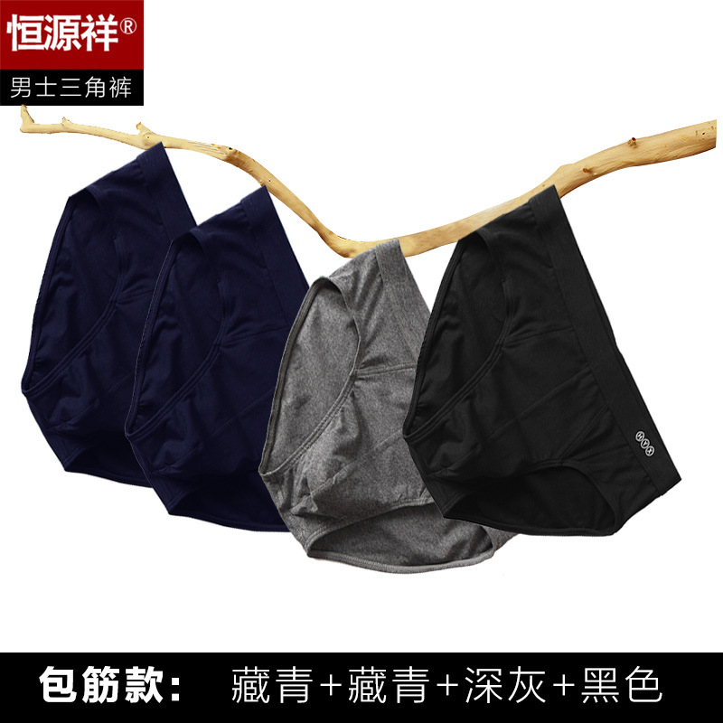 恒源祥男士内裤男三角裤纯棉质短裤透气性感莱卡棉中高腰大码裤头_743 L 包筋(藏青+藏青+深灰+黑色)