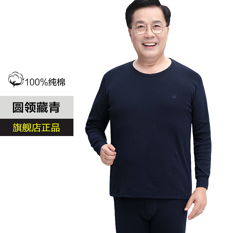 恒源祥中老年人纯棉秋衣秋裤男士保暖内衣冬季打底棉毛衫套装女_840_547 180/105 男款圆领-藏青