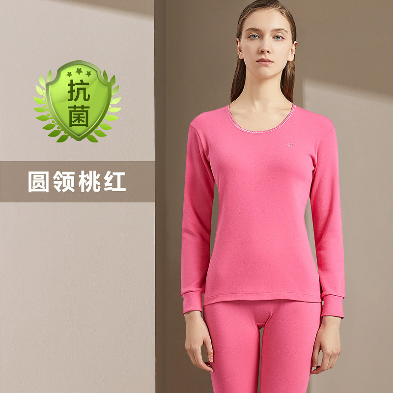 恒源祥秋衣秋裤女套装纯棉男士保暖内衣紧身打底棉毛衫冬季_916_851 160/S 【女款】抗菌圆领桃红