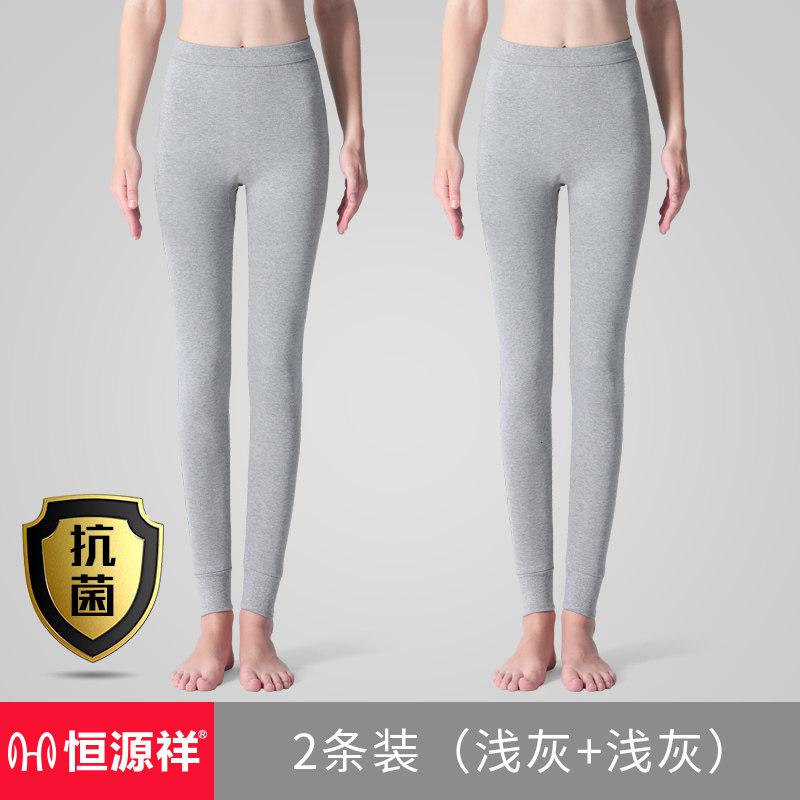 恒源祥纯棉女士秋裤春秋薄款大码内穿打底线裤新款衬裤紧身保暖裤_354 180/2XL 浅灰+浅灰