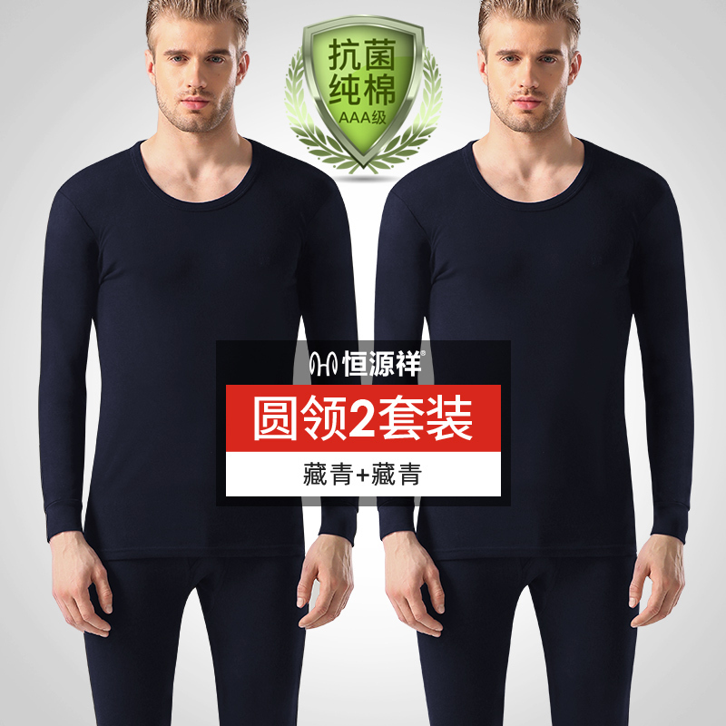 恒源祥保暖内衣男士秋衣裤秋裤套装青少年春秋薄款男生全棉毛衫冬_729_181 4XL/190【AAA抗菌100%纯棉】 【圆领】藏青+藏青