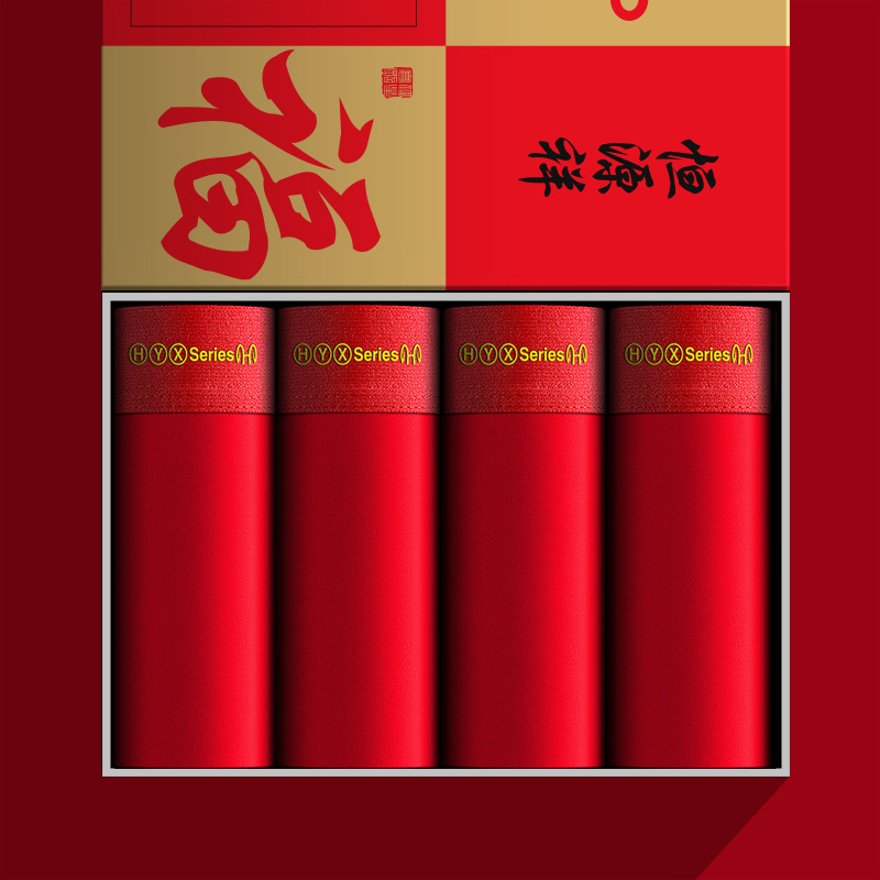 恒源祥男士内裤本命年属虎年四角短裤头纯棉大红色结婚平角裤_368 180/2XL B款【4内裤】幸福美满