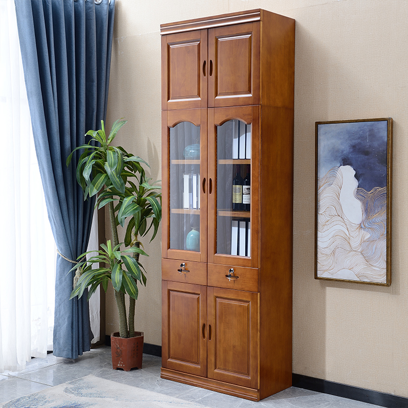 青木川 中式实木书柜书架落地二三五门自由组合家用客厅卧室书房小户型加高加顶柜带锁带玻璃门办公室文件柜书橱 两门【80x40x240cm】