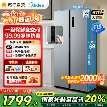 美的(Midea)570升双开门对开门一级能效节能双变频风冷无霜大容量家用电冰箱以旧换新BCD-570WKPM(E)