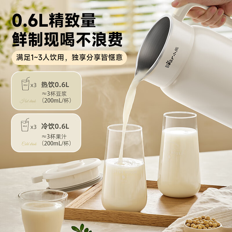 小熊(Bear)豆浆机轻音破壁机全自动小型1-2人多功能家用料理机直饮H05C1 0.6L自动保温特快制浆