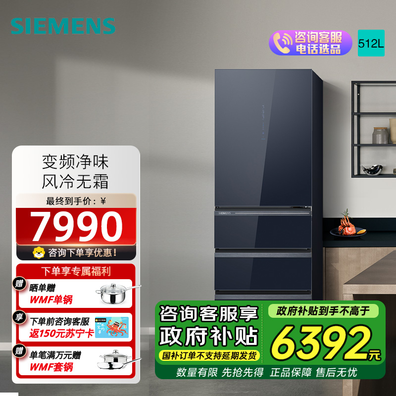 西门子[重磅新品]十字对开门503升平嵌冰箱大容量存储 抗菌净味 智能抗冷凝技术三种变温储鲜玻璃面板KC88EA420C