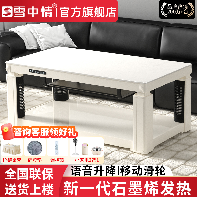 雪中情电暖桌取暖桌电暖炉烤火桌茶几一体升降电暖茶几家用客厅长方形烤火炉电炉取暖器电暖器电茶几岩板带语音控制