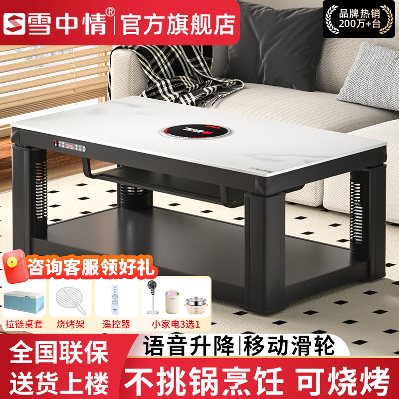 雪中情电暖桌电暖炉家用多功能取暖桌升降茶几烤火桌电烤桌长方形客厅电炉X24V800君临天下150*80隐形电磁炉上下发热