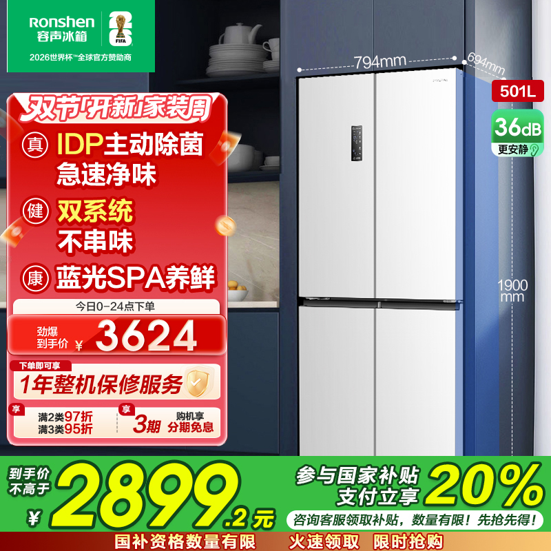 容声501pro IDP净味十字对开四门双系统白色电冰箱以旧换新补贴BCD-501WD8FPZ白