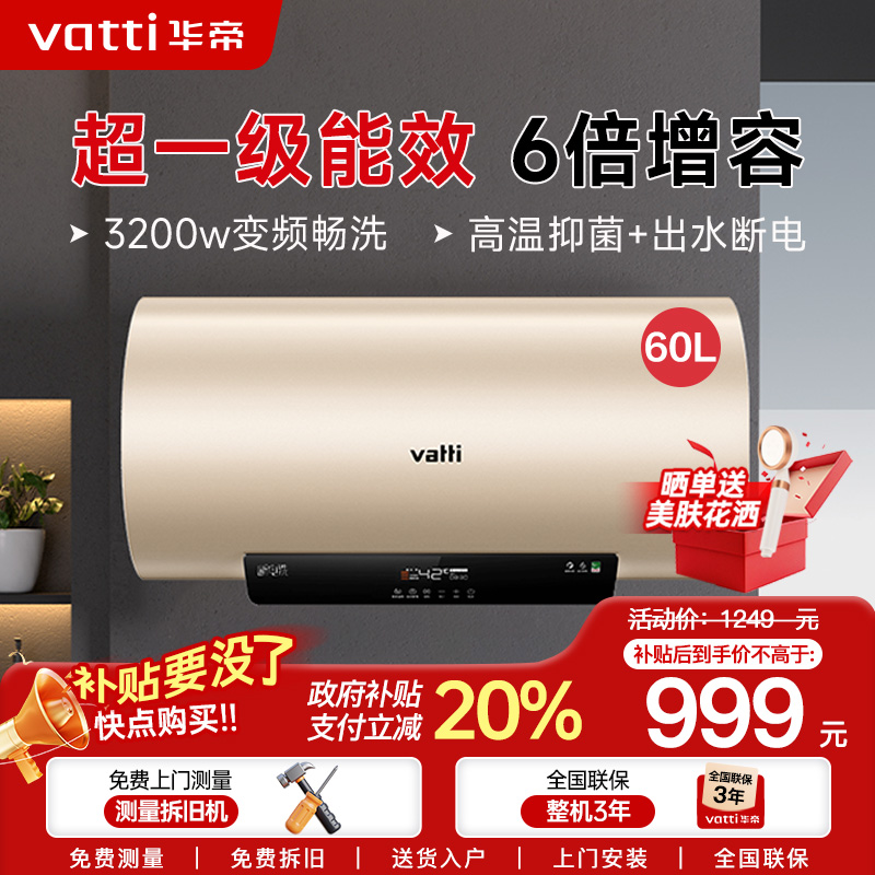 [国补20%]华帝(VATTI)电热水器60升储水式 一级能效节能 3200w变频速热 安全出水DDF60-i14025