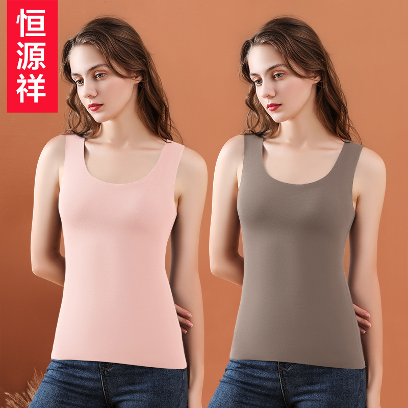 恒源祥女士保暖背心无痕内衣打底衫薄款单件女上衣内穿秋冬季 170/L【推荐体重100-110斤】 无痕【双面磨毛】胭脂粉+摩卡棕