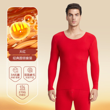 花花公子保暖内衣男士纯棉毛衫中高领打底大码纯棉秋衣秋裤套装冬 无痕热暖绒抗菌大红 175 XL男