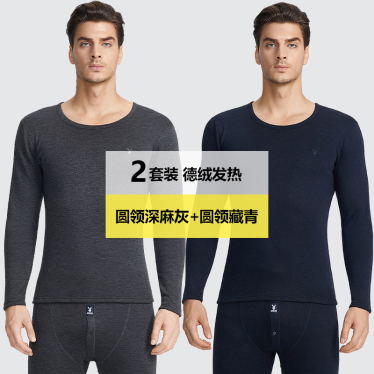 花花公子德绒保暖内衣男士加绒加厚打底冬季发热纯棉秋衣秋裤套装 2套装德绒加厚圆领深灰+藏青 3XL推荐160-185斤