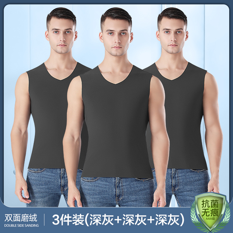 恒源祥男士保暖背心无痕内穿打底秋衣加绒上衣秋冬季单件上身内衣_297 175/XL 【3件】深灰+深灰+深灰