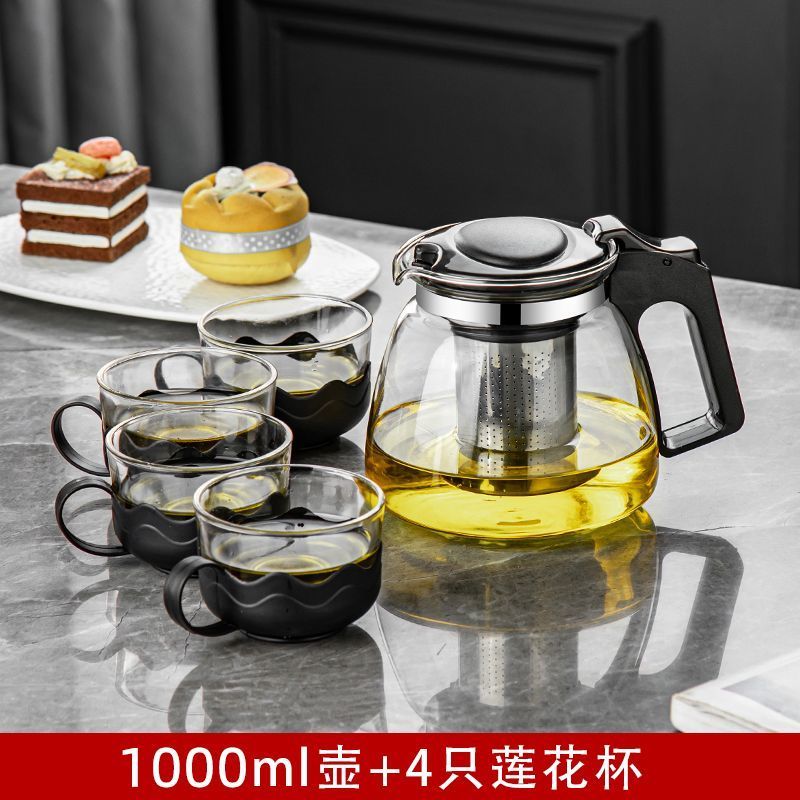 水壶耐高温防爆玻璃泡茶壶家用泡茶大号加厚过滤花茶壶茶具套装 1000毫升+4莲花杯