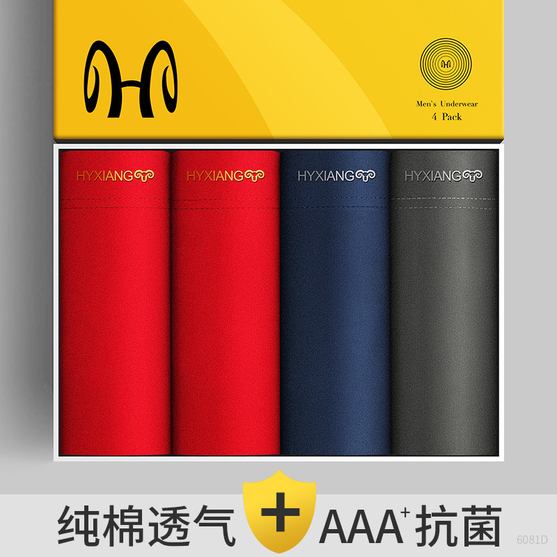 恒源祥男士内裤男本命年大红色牛年中腰平角裤结婚属牛四角短裤头 4XL(适合体重170-190斤) 红色+深灰+藏青4条礼盒装