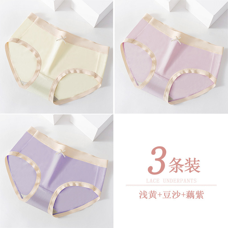恒源祥纯棉内裤女士棉学生透气无痕可爱少女生日系三角短裤 165/L 三条装8460【浅黄+豆沙+藕紫】