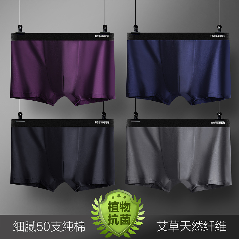 四季款棉男士内裤无痕四角裤衩纯色内裤男弹力中腰内裤