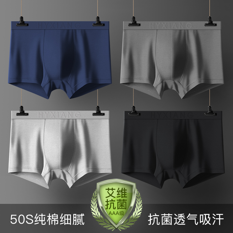恒源祥纯棉男士内裤平角大码裤衩四角短裤头潮流男生夏季薄款 190/4XL 3A植物抗菌【经典纯色1089C】宝蓝深紫黑色碳灰