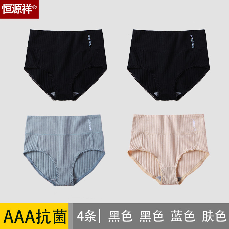 恒源祥内裤女高腰收腹提臀纯棉大码孕妇妈妈中腰三角短裤女 XXXL 高腰棉质收腹抗菌(黑色黑色蓝灰肤色)