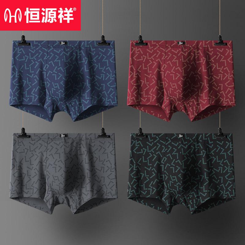 恒源祥品牌男士内裤正品礼盒装男士内裤弹力棉四角裤 4XL/190 HK6002大红