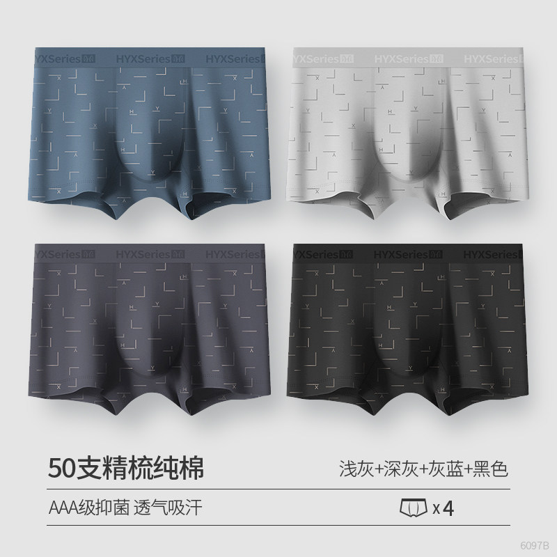 恒源祥男士内裤男平角裤纯棉夏季透气四角短裤头全棉裤衩潮流_709_510 190/4XL AAA级植物抗菌【经典纯色1089C】宝蓝/深紫/黑色/碳灰