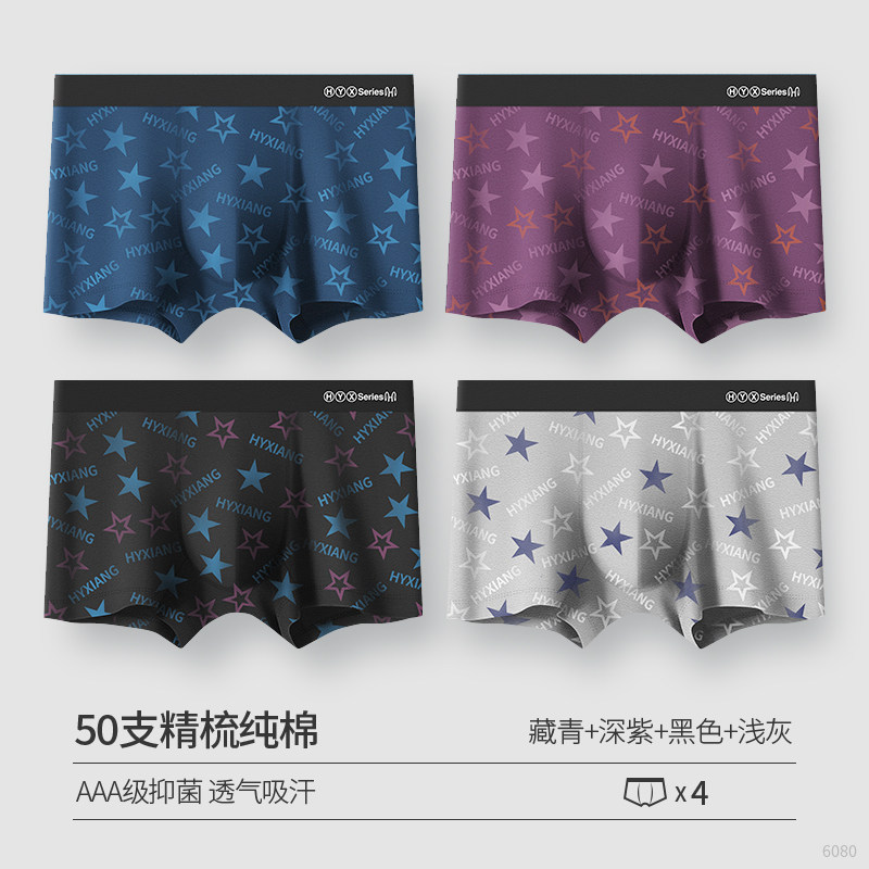 恒源祥男士内裤男平角裤纯棉夏季透气四角短裤头全棉裤衩潮流_709_510 190/4XL AAA级植物抗菌【经典纯色1089C】宝蓝/深紫/黑色/碳灰
