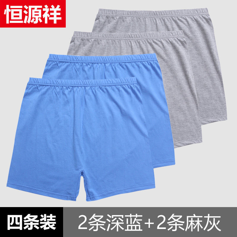 恒源祥内裤男中老年男士内裤纯棉宽松季透气大裤衩裤头4条盒装 3XL185 2深蓝+2麻灰4条全棉盒装