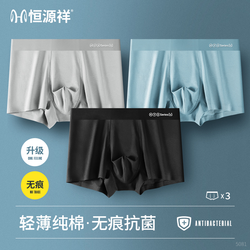 恒源祥男士内裤男纯棉薄款中腰平角裤四季棉透气裤衩四角内裤头 XL/175(推荐体重105-125斤) 黑色+浅灰+浅蓝3条盒装