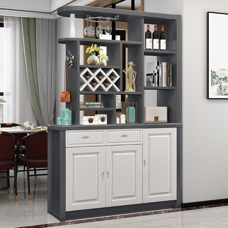 青木川 简约现代实木酒柜鞋柜一体靠墙1.3米0.9米1.7m餐厅客厅进门口入户玄关隔断屏风双面间厅柜置物架 三门【白色+深灰色】1.3米长