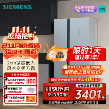 [超薄嵌入]SIEMENS 西门子502L风冷无霜纤薄对开门冰箱BCD-502W KX50NA43TI