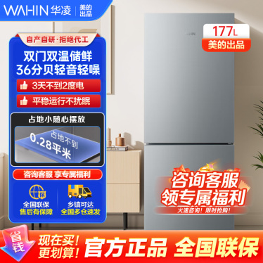 [美的出品]华凌185 双门两门家电冰箱小型家用租房节能低音二门双温速冻冷冻冷藏小冰箱HR-185