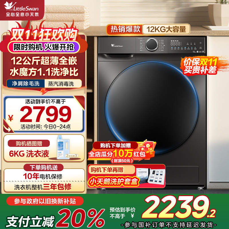 小天鹅(LittleSwan)滚筒洗衣机全自动家用12公斤大容量一级变频银离子除菌水魔方护色护形TG120V618T
