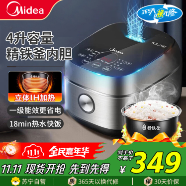 美的(Midea)电饭煲MB-FB40S701家用4L大容量IH加热电饭锅智能预约精铁釜蒸米饭锅煮饭锅