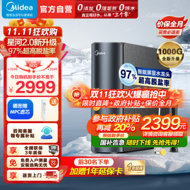 美的(Midea)净水器家用净水机1000G 星河2.0净矿净水器双水直饮 触控式龙头5年RO反渗透矿物质厨下式净饮机