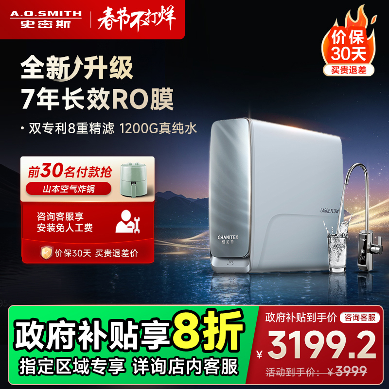 [重磅上市]史密斯净水器佳尼特蓝鲸家用厨下式直饮净水机3.2升/分钟专利7年长效RO膜CR3200AB1