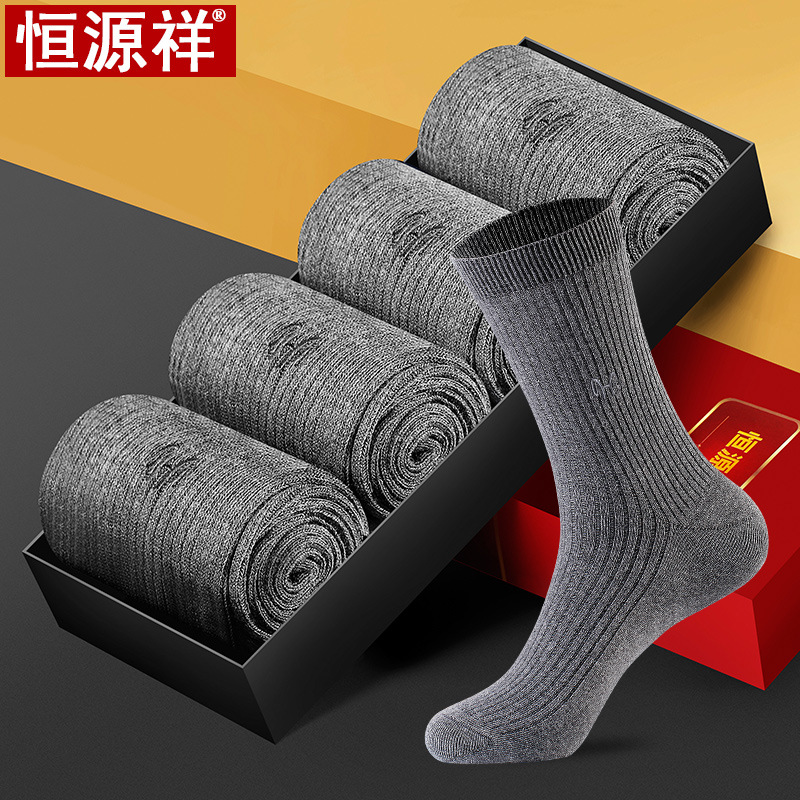 恒源祥袜子男长筒袜100%纯棉秋冬季男士长袜全棉防臭厚款高筒男袜_470 均码 深灰色纯棉4双装