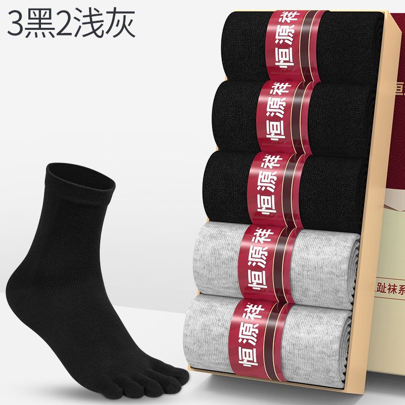 恒源祥五指袜男士纯棉中筒棉吸汗春秋四季薄分趾五趾袜子男_933 100%棉五趾男袜 中筒-3黑2浅灰