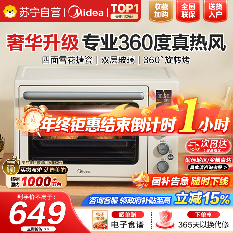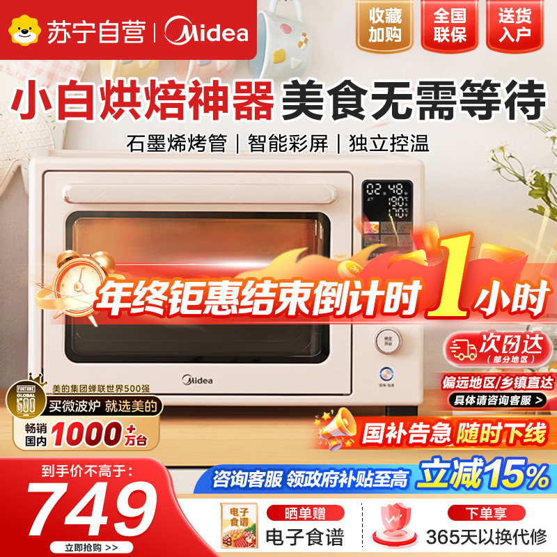 国家补贴美的电烤箱家用Q40石墨烯免预热空气炸风炉烤箱一体机40升大容量一键复脆精准控温四面搪瓷超凡粉Q40