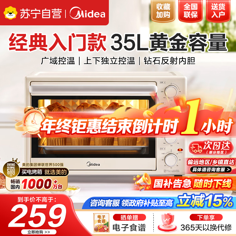 美的(Midea)电烤箱 35升家用多功能 机械式操作 独立控温 三种烘烤模式 专业烘焙蛋糕PT3540
