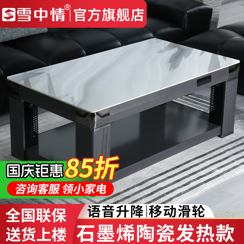 雪中情电暖桌取暖桌电暖炉烤火桌茶几一体升降电暖茶几家用客厅长方形烤火炉电炉取暖器电暖器电茶几岩板带语音控制W25
